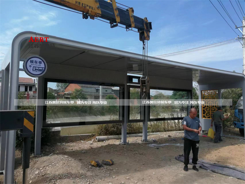 顯得時尚現代,表面耐腐蝕,具有十多年的使用壽命,淺灰色高溫噴塑延長保護產品表面,頂棚和座椅的設置,免除了周邊村民等車時候,可能遭遇的日曬雨淋,江蘇奧爾特以優質的厚車貼產品和服務,配合當地客戶完善候車亭基礎設施,