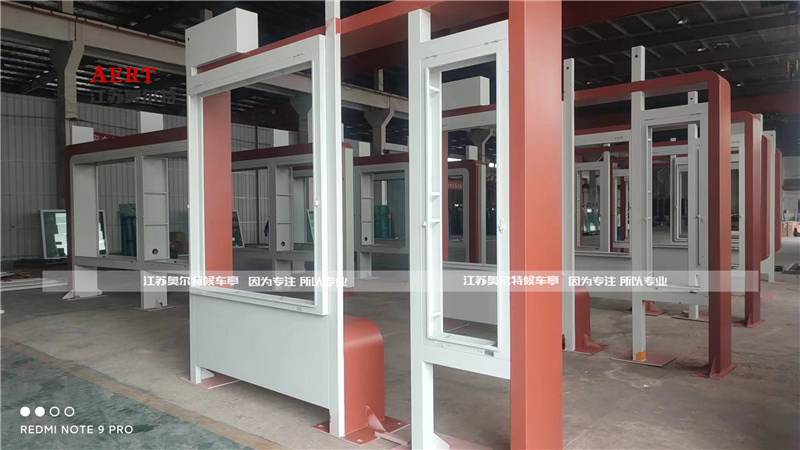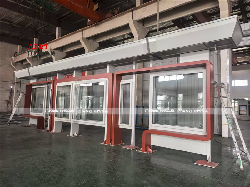 • 外觀設(shè)計(jì):候車亭整體采用鍍鋅鋼板,噴涂淺灰色氟碳漆,搭配紅色裝飾和紅色的站點(diǎn)名稱,具有現(xiàn)代風(fēng)格。
