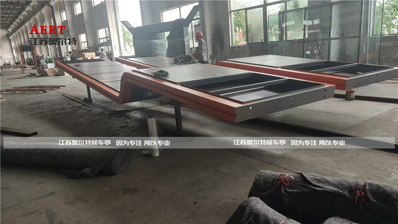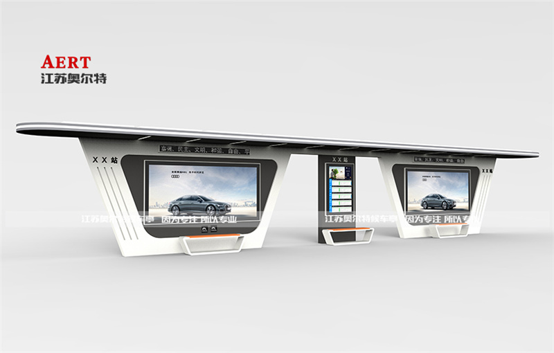 • 外觀設計:由“江蘇奧爾特”宿遷智能候車亭廠家設計,以沉穩大氣的深灰色為色調,搭配橙色,頂棚采用流線型設計,結合燈光系統,兼具歷史韻味與現代感。